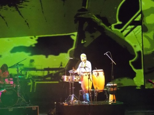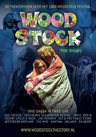 ‘By the time we got to Woodstock, we were half a million strong and everywhere there was song and celebration’ zingt het negenkoppig gezelschap luid en al klappend en trommelend dalen ze de trap af van het Zoetermeerse Stadstheater. Gedwee loopt iedereen achter de muzikanten de zaal in. Terwijl het Stadstheater volstroomt spreekt acteur en regisseur Laures ten Den in zijn rol van lichtman en spreekstalmeester Chip Monk ons luchtig toe over love, peace, vrije seks en ongegeneerd blowen: ‘This is the dawning of the age of Aquarius. harmony and understanding’. Woodstock The Story is een energiek rockconcert met eerlijke emotie, humor en passie die je bij je kladden grijpt, onder je huid kruipt en niet meer los laat. Een intrigerende, muzikale 2,5 uur durende tijdreis met prachtige beelden van het festival en mooie montagefilmpjes van de gigantische verkeerschaos, het uitzinnige publiek en de optredende artiesten.